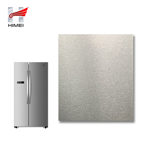 家電用覆膜鋼板,就是鋼板的基材上面覆了一層PET膜/PVC膜,然后通過覆合貼覆而成,主要應用在各類家電外殼裝飾上,例如冰箱、洗衣機、電飯煲等外殼部件。覆膜是一種物理工藝,一層膜一層鋼板經過高溫高壓壓合而成。
